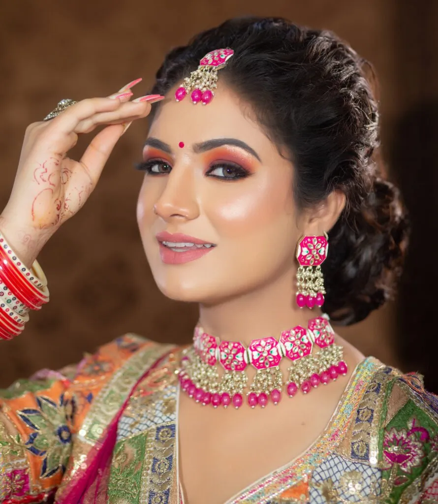 Flawless bridal makeup creating timeless elegance, long-lasting glow, perfect finish for your special wedding day.